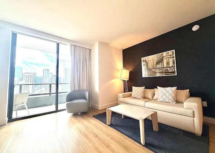 2 Bedroom Stylish Condo Downtown Pool Gym Spa Miami de 800 m² est situé dans le quartier Centre de Miami, à seulement 6 minutes de marche du parc du district de West Kendall.
